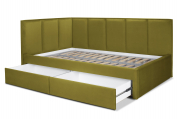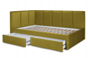 Угловая кровать будет актуальна как для детей, так и для взрослых. Мягкое изголовье создает дополнительный уют в интерьере. Качественная отстрочка добавляет объемности модели. Кровать выполнена из качественного микровелюра, который с легкостью чистится при необходимости. Изделие оснащено ортопедическим основанием. Возможно выполнение на правый или левый угол по вашему желанию. Задняя спинка обшита технической тканью.