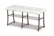 Оригинальная обувница выполнена из металлокаркаса. Мягкое сидение выполнено из качественной экокожи. На полках можно разместить порядка восьми пар обуви.