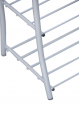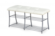 Оригинальная обувница выполнена из металлокаркаса. Мягкое сидение выполнено из качественной экокожи. На полках можно разместить порядка восьми пар обуви.