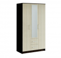 Шкаф трехстворчатый имеет два платяных отделения, два выдвижных ящика и бельевое отделение; украшен зеркалом с еврокромкой.